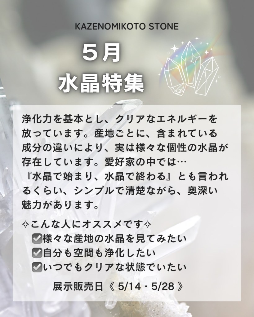 今回のテーマ:水晶特集